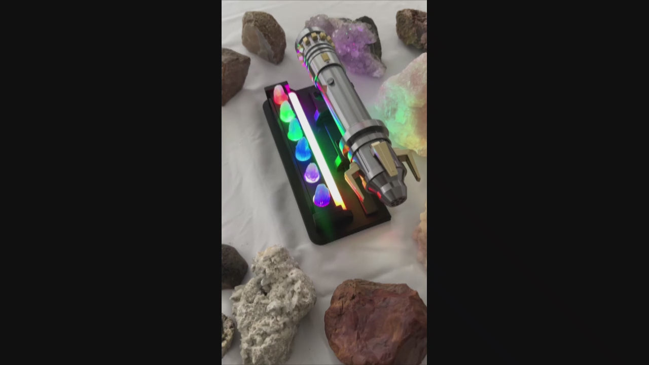 Lightsaber Display Stand with Kyber Crystal Holders and LED lighting